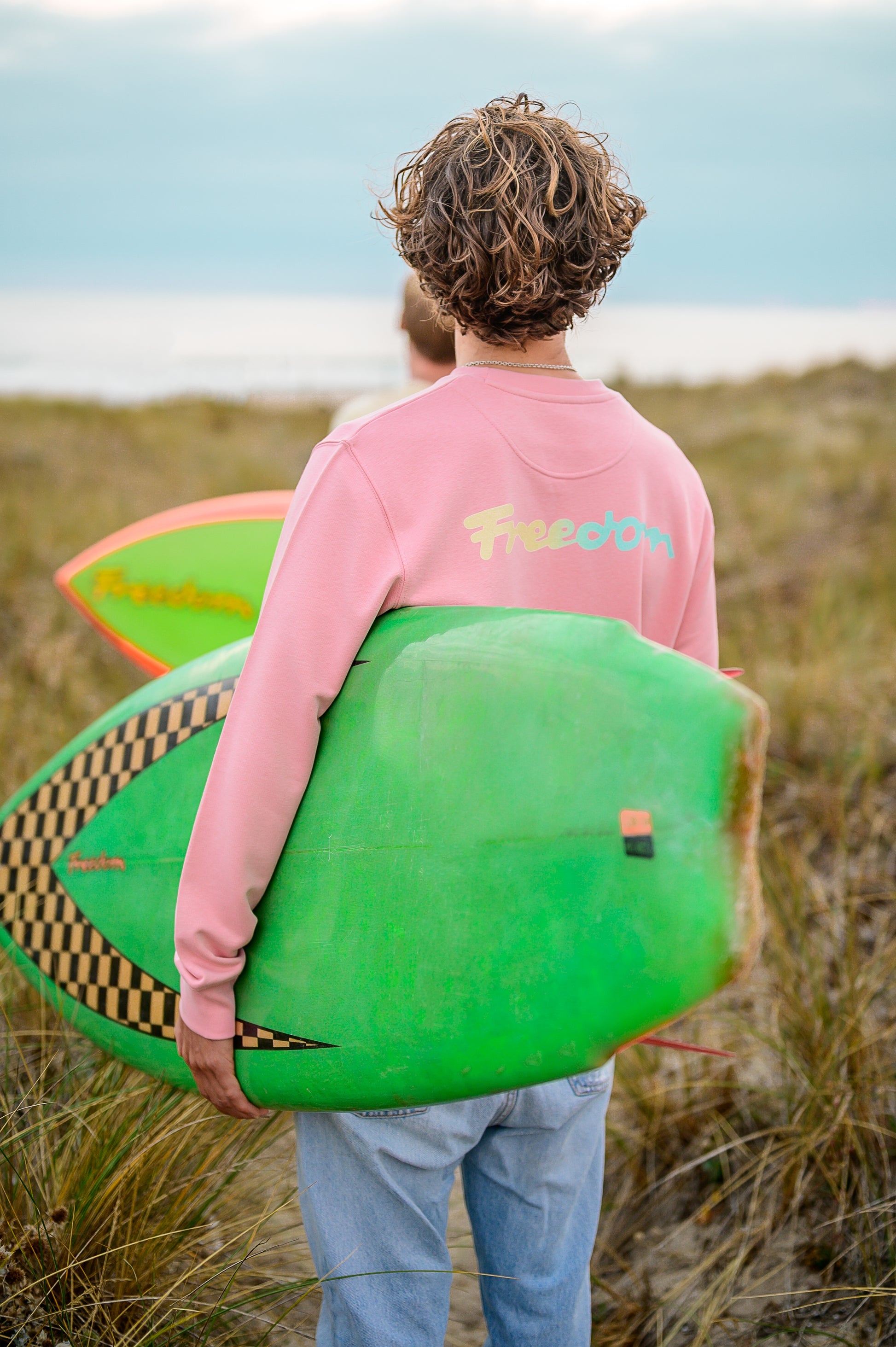 This unisex Freedom sweater in Himalayan Salt captures the relaxed spirit of coastal living. Made from premium organic cotton it is smooth breathable and effortlessly comfortable. The relaxed fit and clean crew neckline keep it timeless while the Freedom logo on both the front and the back fades from warm sunset yellow into a cool sea blue. The colours echo that moment when the sun dips low touching the water and everything feels slow and easy 🌴☮️🌺